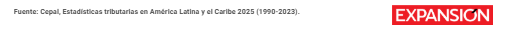 México recauda en impuestos 17.7% de su PIB, es el octavo país con menor captación entre los países de Latinoamérica, con 21.3%, y está por debajo del promedio de la OCDE, con 33.9%, de acuerdo con cifras de la Cepal.