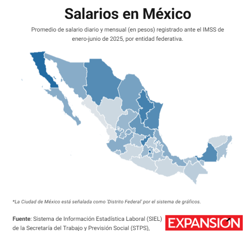 El salario diario promedio en México es de 622.85 pesos, según la Secretaría del Trabajo y Previsión Social (STPS). De enero a junio de 2025, la Secretaría estableció esta cifra con datos del IMSS, pero hay otros estados donde se gana más, o menos.