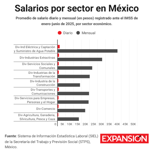Industrias extractivas: 914.94 pesos diarios, y 27,905.67 mensuales.