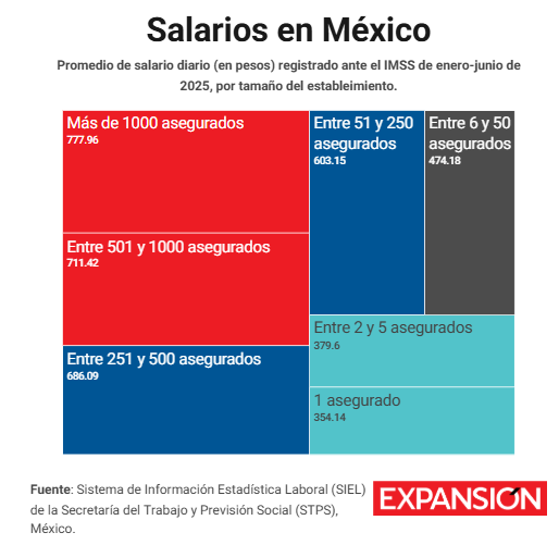 Los datos del SIEL demuestran que mientras más grande sea un establecimiento, puede ofrecer un salario mayor que los pequeños con asegurados.